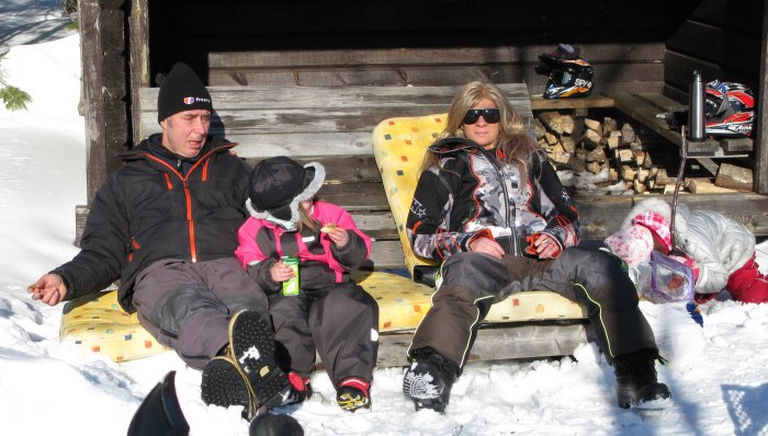 Lördag 6 Mars Kaffeslurken! Nästan som i fjällen! Slappning i solen! Linn & Matte! Grillmästarn... ...är övervakad! Fika är så gott ute! De är ju ba så jävla kul!! Alla blev nog mätta o belåtna... ..men törstig.