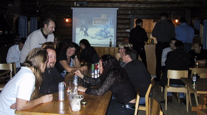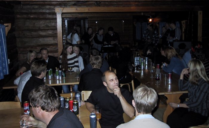 | Så har den första festen för säsongen gått av stapeln, som vanligt blev det fullt hus med ett gäng som hade humöret på topp hela kvällen. Baren var tidvis nästan omöjlig att se överhuvudtaget pga. den stora tillströmningen av törstiga gäster. Trubadurerna Leffe & Vollan skapade hög stämning och publiken stämde upp i allsång, inte bara en utan många gånger under kvällen. | |
